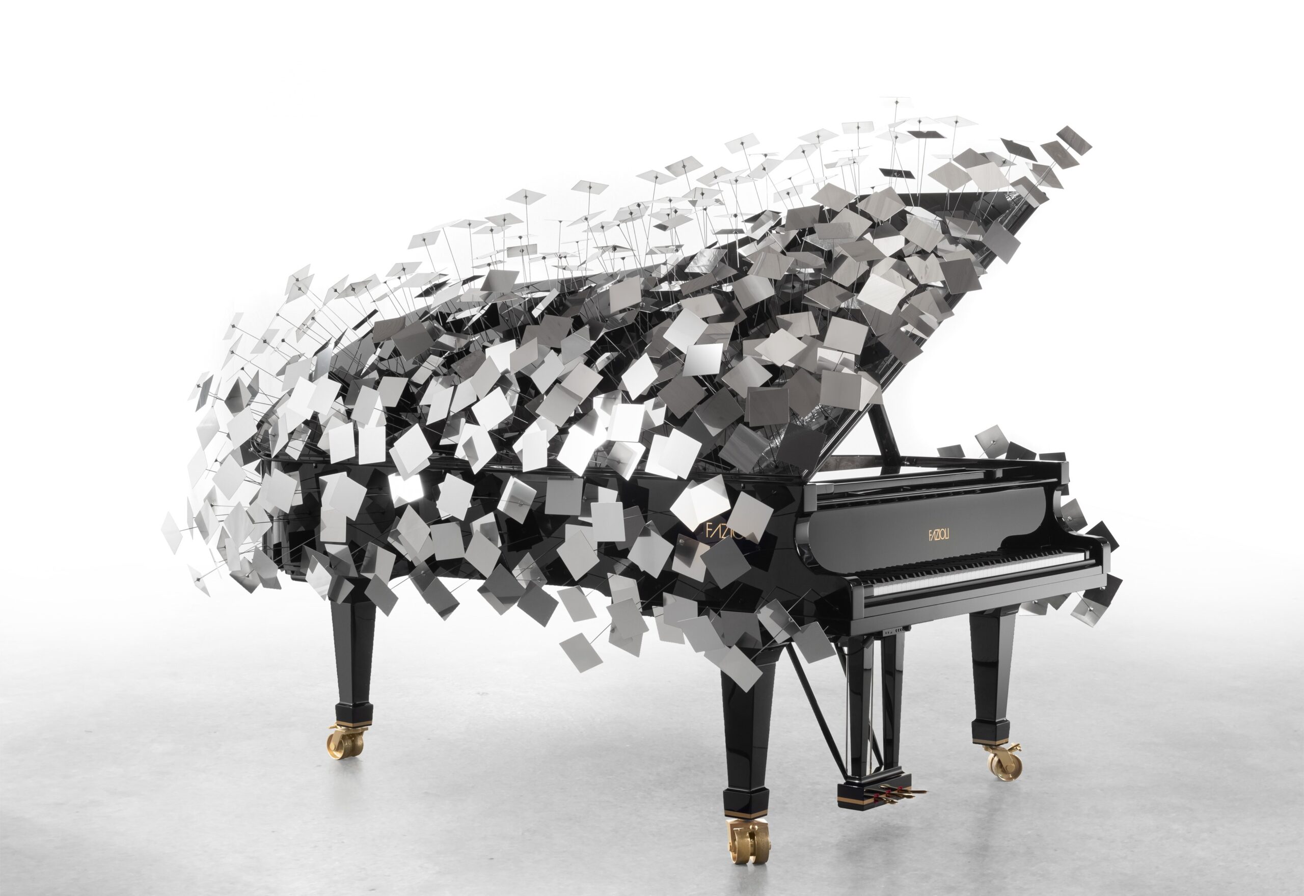 云上的法奇奥里是一架 Fazioli F228 型黑色珐琅半音乐会三角钢琴。它是在公司意大利工厂在大师保罗·法齐奥利 (Paolo Fazioli) 的亲自监督下手工打造的,无可挑剔。