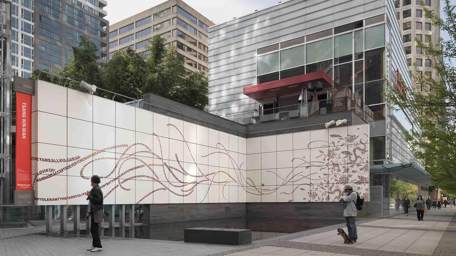 ong Kong artist Tsang Kin-Wah critically addresses some of the complexities surrounding migration, cultural identity and racism in these site-specific works. At Vancouver Art Gallery’s public art space, Offsite Tsang presents a large-scale composition using English texts to form floral and animal patterns.