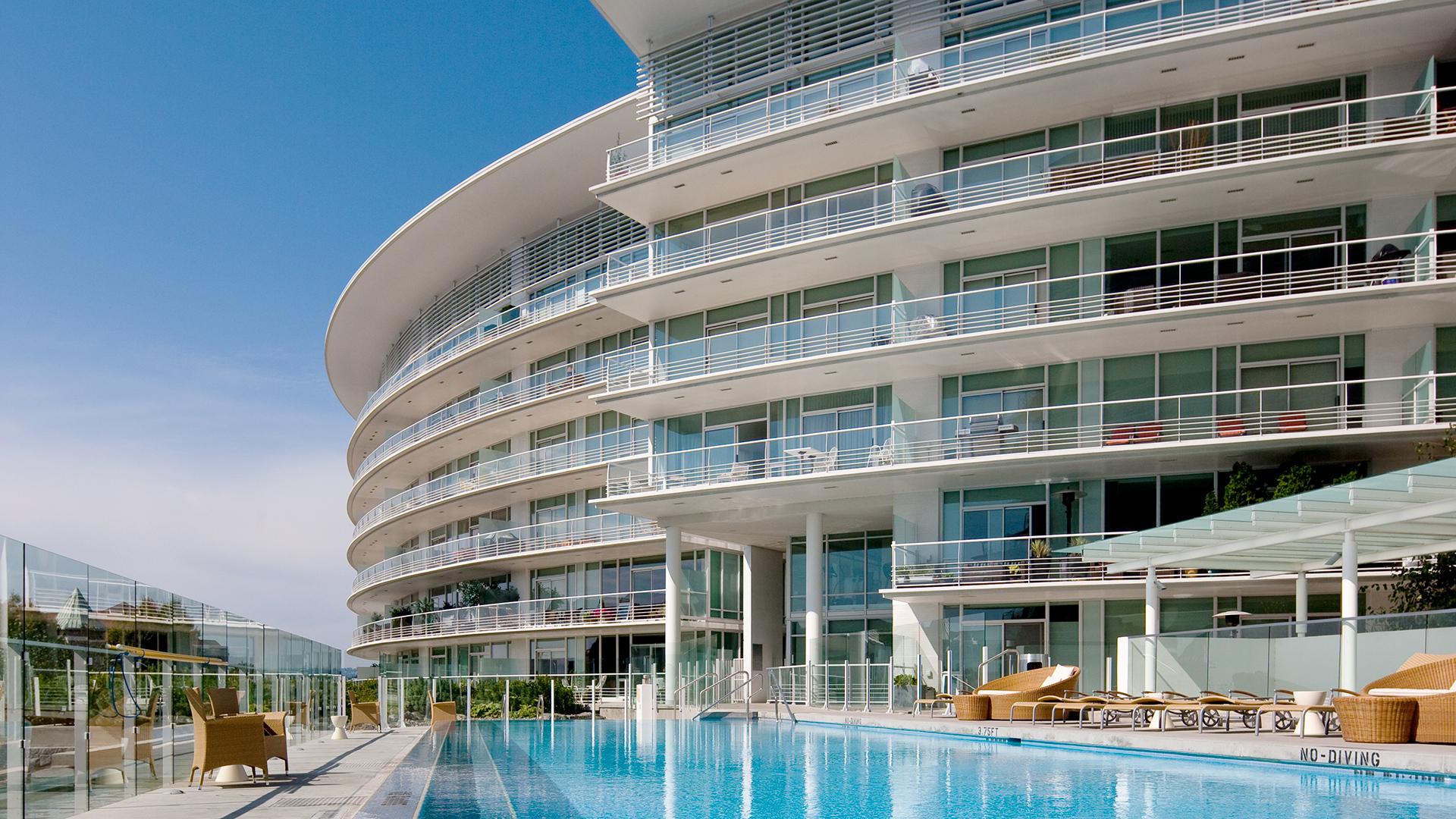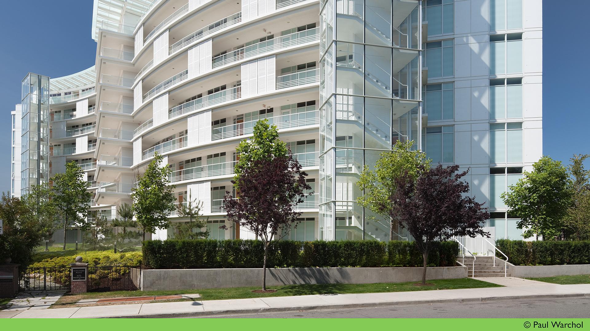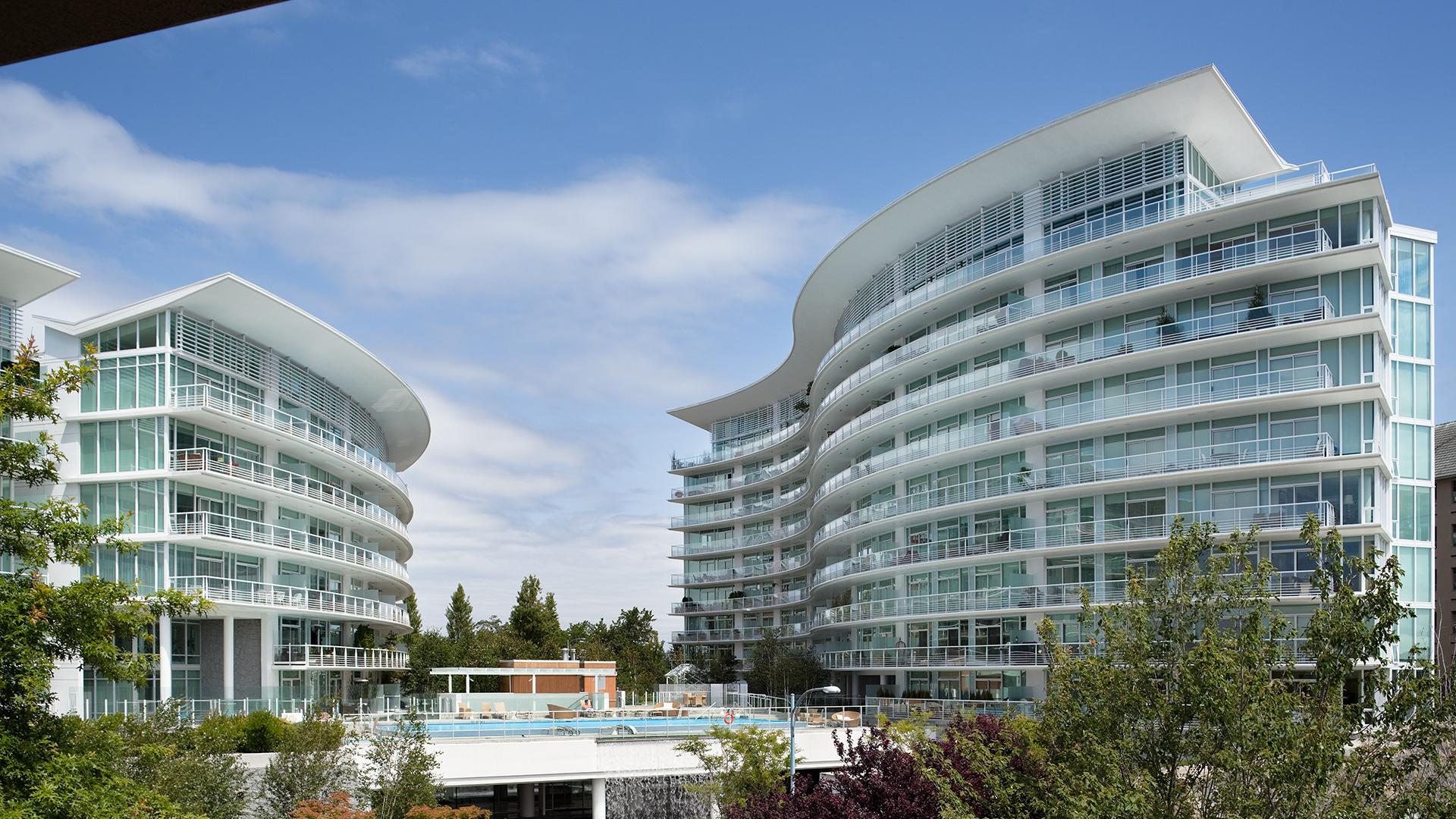 百叶水疗会所住宅在维多利亚的水岸边,是我们在维多利亚完成的最令人赞叹的项目。这个项目是由郑景明设计的,这片住宅项目共有185个单元,提供了度假式现代奢华公寓的居住模式。通过丰富的景观、水池和一些建筑特征,比如双层喷泉、拱券洞门(Porte-Cochère)、开敞的电梯和水疗设施,现代奢华展现无疑。项目中还包括两栋曲线建筑,一栋6层一栋9层,九年来,这是我和Jim最喜欢的项目之一。它非常美丽。