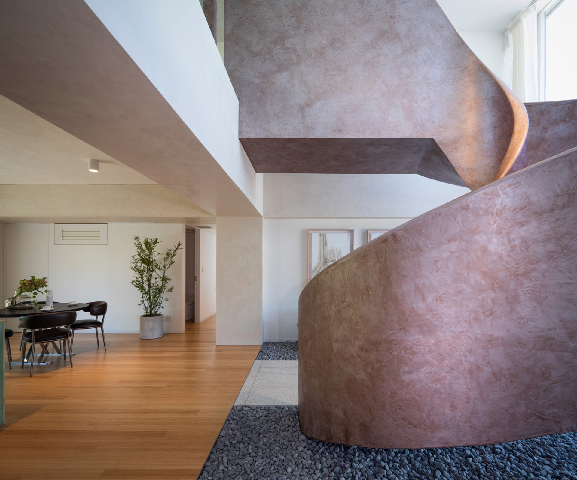从内向外的构建设计,从小到大的追求细节。在一层层轻重相交,融合了欧洲和日本美学理念的设计。建筑的内部拥有11间公寓和2间顶层豪宅,每间公寓都是宽敞而通风的开放式房型,拥有高高的天花板和俯瞰树木的落地窗户。建筑的外部,环绕着日式花园,起伏的苔藓山丘,散落的小型岩石花园,流淌的溪流以及茂密的竹林,枫树和樱花树。
